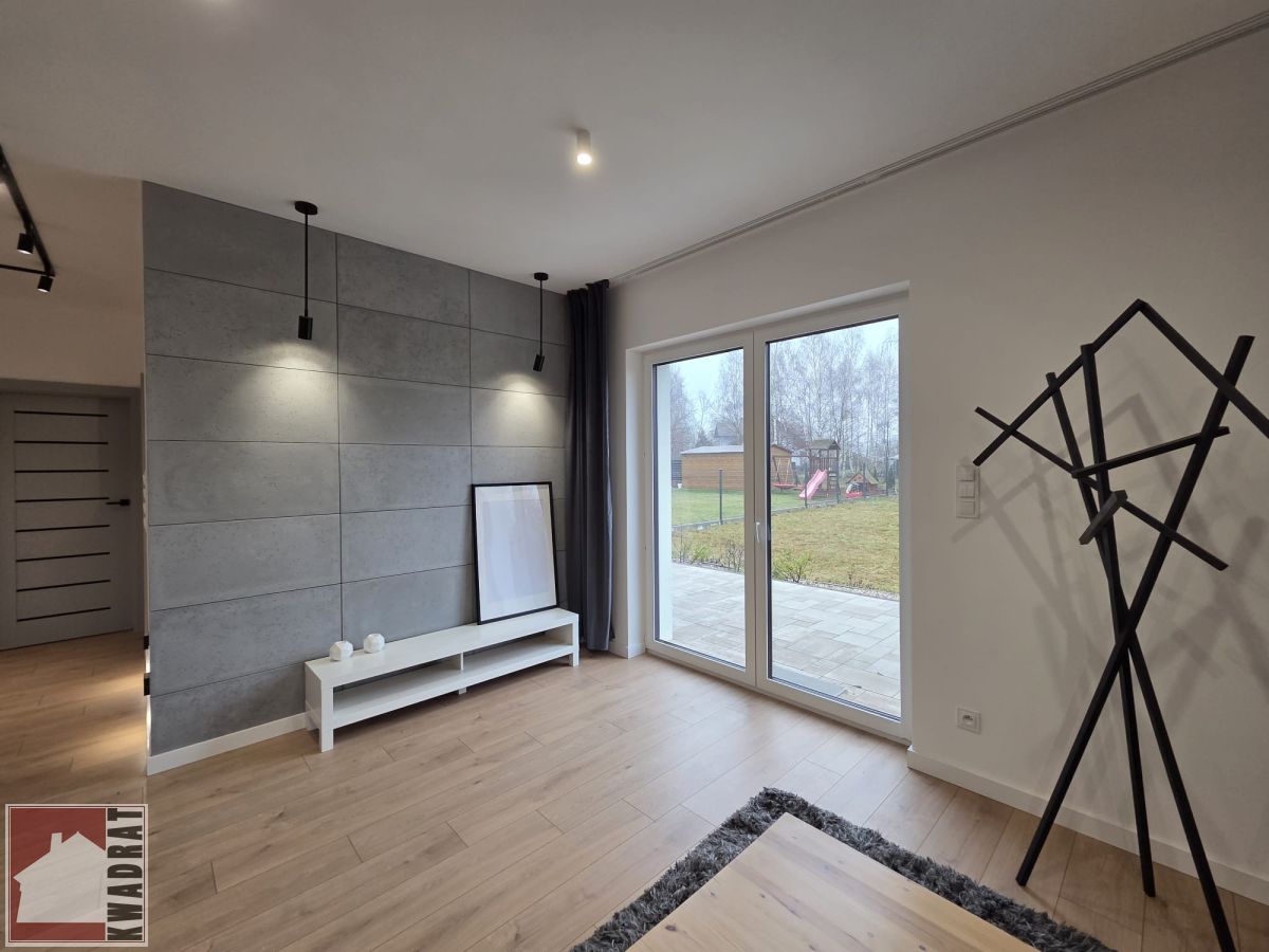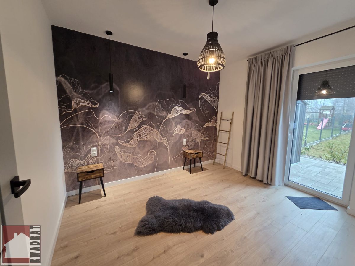 Dom składa się z salonu, 3 sypialni, kuchni otwartej na salon, łazienki z wc, przedpokoju oraz hollu. Dom posiada duży ogód, wygodny duży taras oraz dwa miejsca parkingowe znajdujące się na terenie posesji.