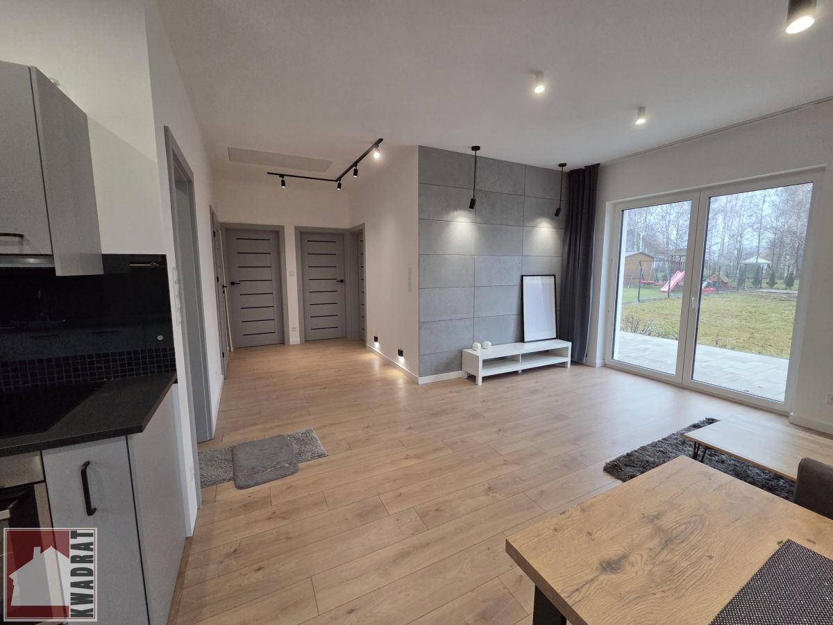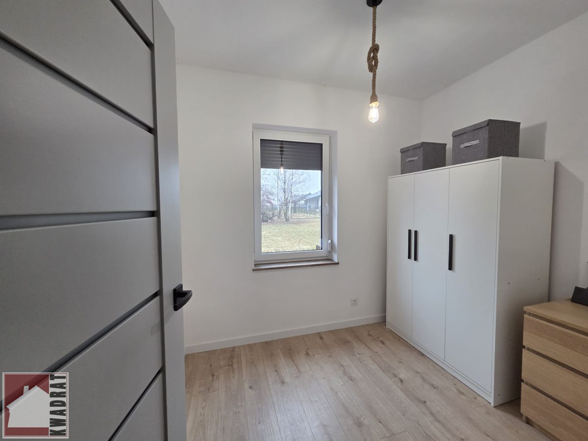 Dom składa się z salonu, 3 sypialni, kuchni otwartej na salon, łazienki z wc, przedpokoju oraz hollu. Dom posiada duży ogód, wygodny duży taras oraz dwa miejsca parkingowe znajdujące się na terenie posesji.
