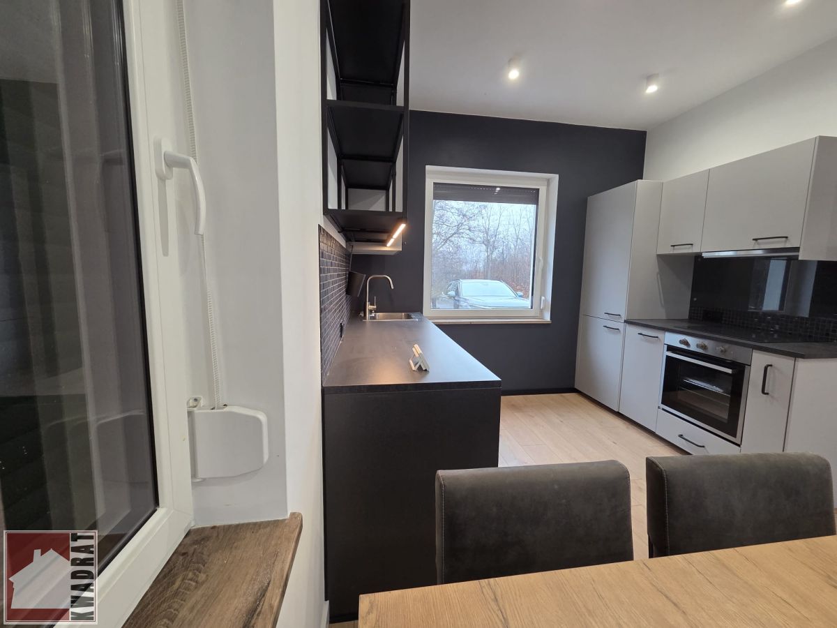 Kuchnia oraz salon w pełni umeblowane wraz z pełnym AGD ( kuchenka indukcyjna, okap, lodówka, zmywarka, piekarnik, zlewozmywak)